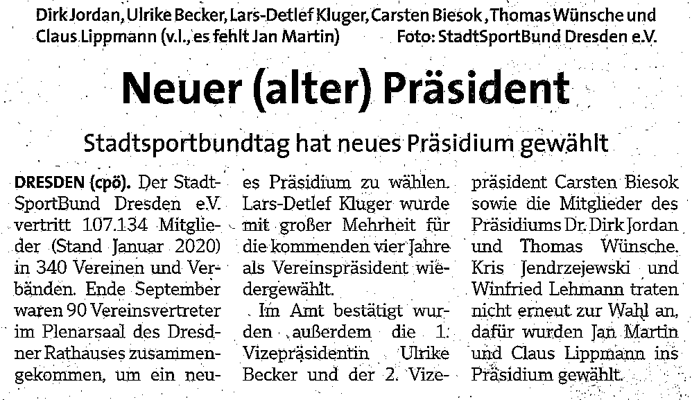 Wir gratulieren Dr. Dirk Jordan zur Wiederwahl als Mitglied des Präsidiums des StadtSportBund Dresden e.V.
